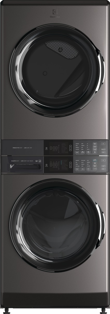Full-size and fully integrated front load electric/gas Electrolux Laundry Tower™ features a stacked design that takes up half the floor space, freeing up the laundry room for extra storage, all with an easy to reach control panel. The washer provides the most effective stain removal with SmartBoost® premixing technology.Read More