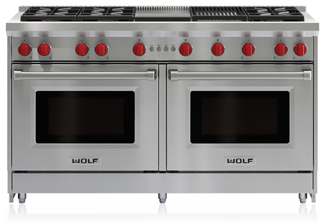 Wolf® 60" Stainless Steel Pro Style Gas Range with 8.8 cu. ft. total capacity, charbroiler, sealed burners and griddleRead More